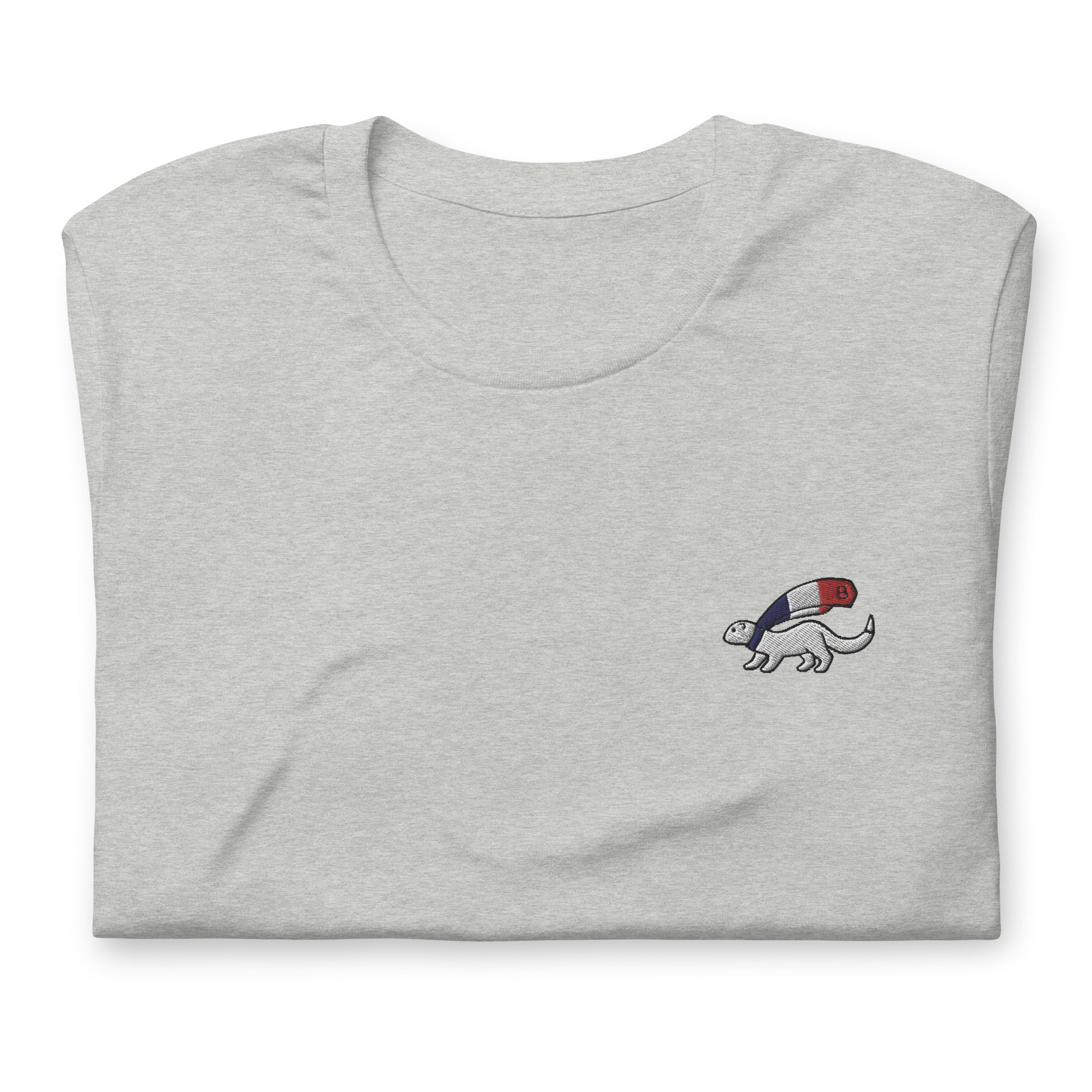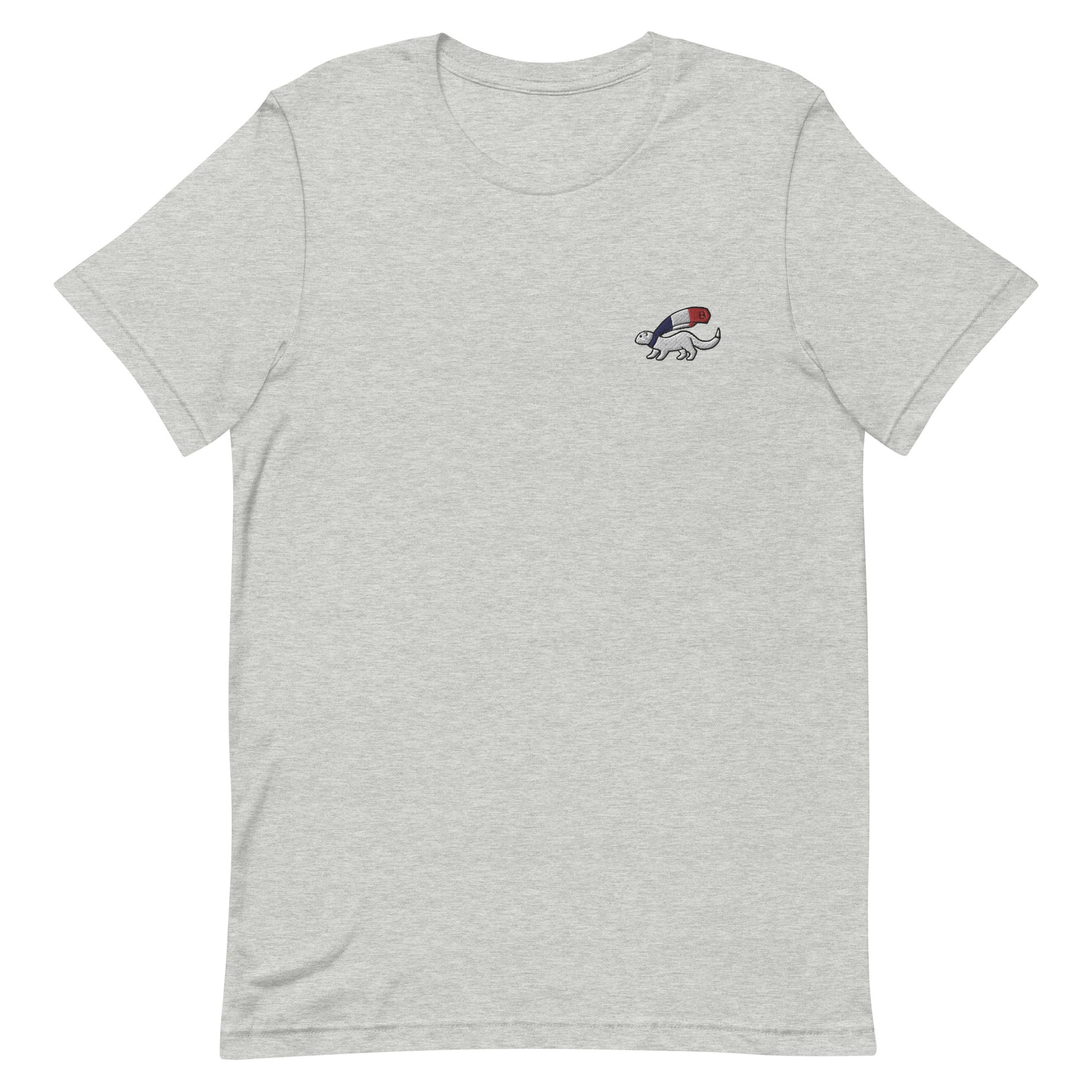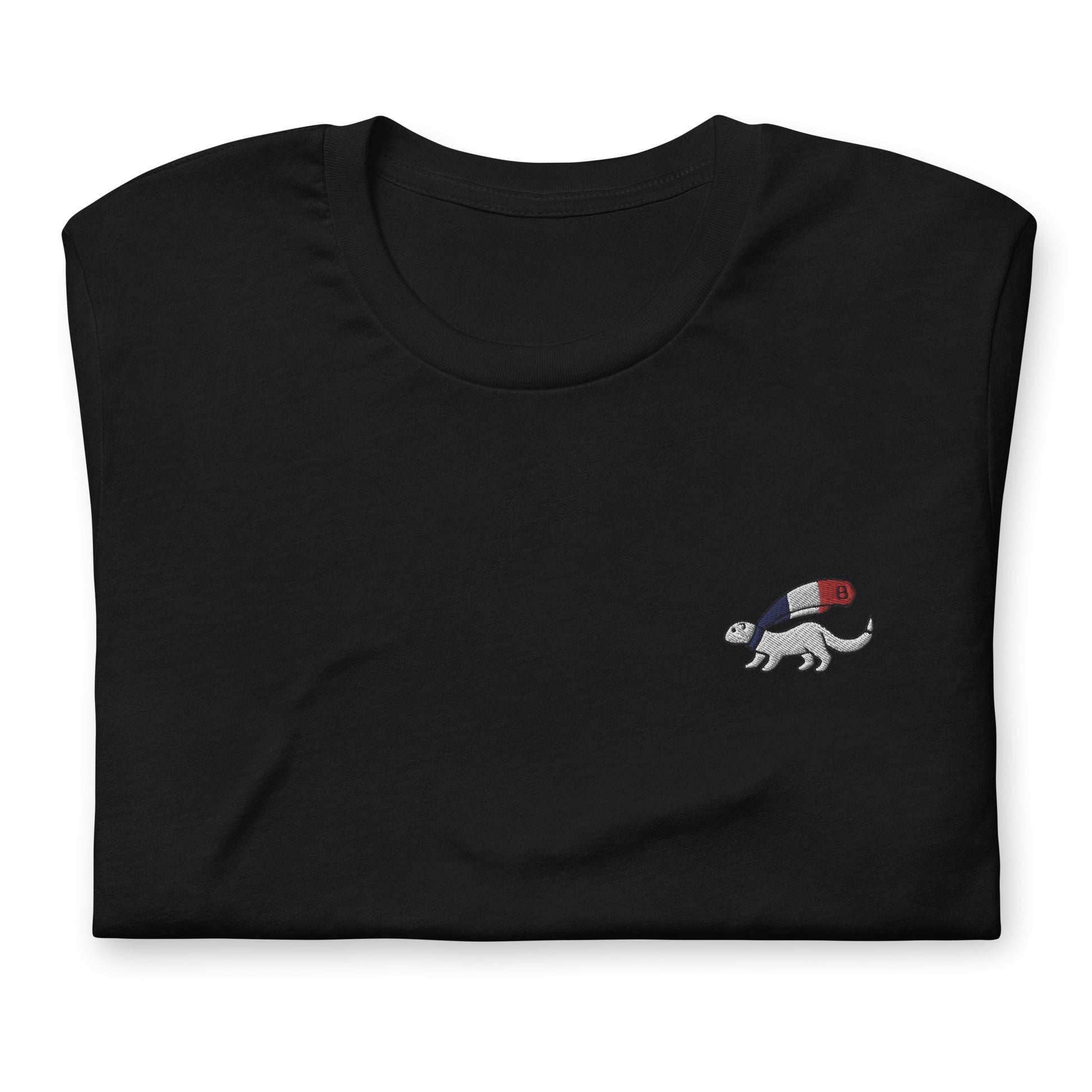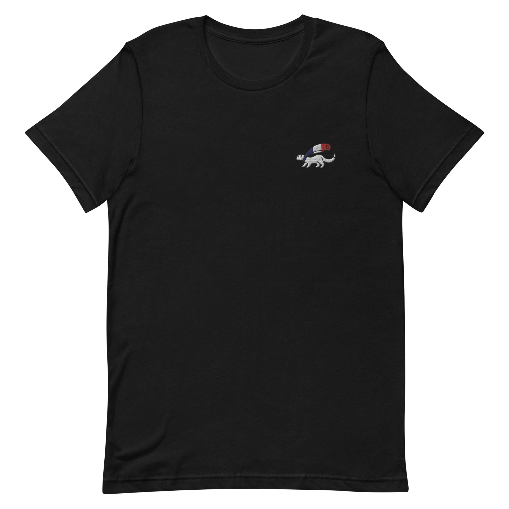 For all of our friends who want to show pride for the place that inspired our logo, this special edition embroidered tee sports the fabulous weasel wearing the drapeau tricolore of France.